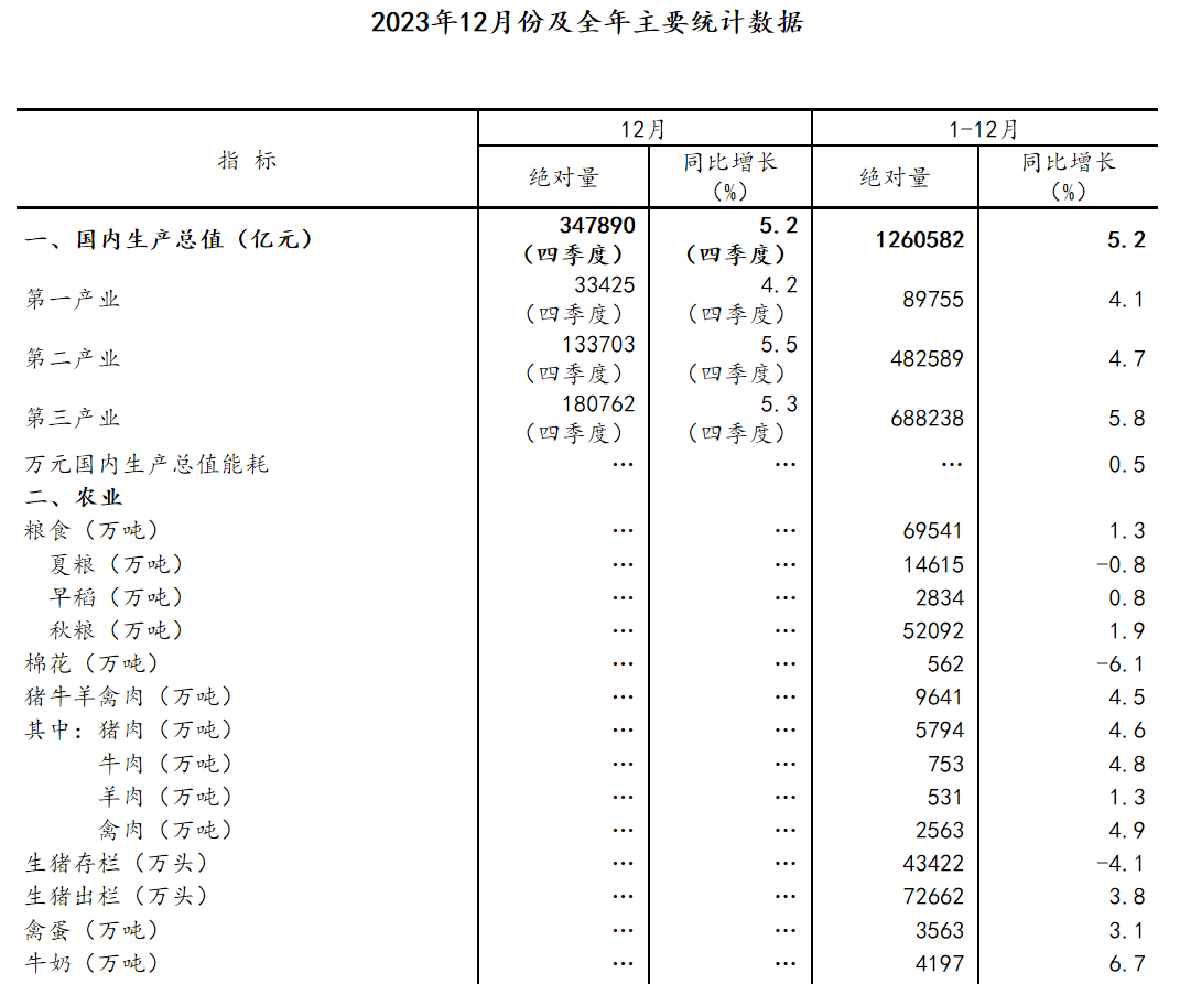 2023年12月份及全年主要統(tǒng)計(jì)數(shù)據(jù)