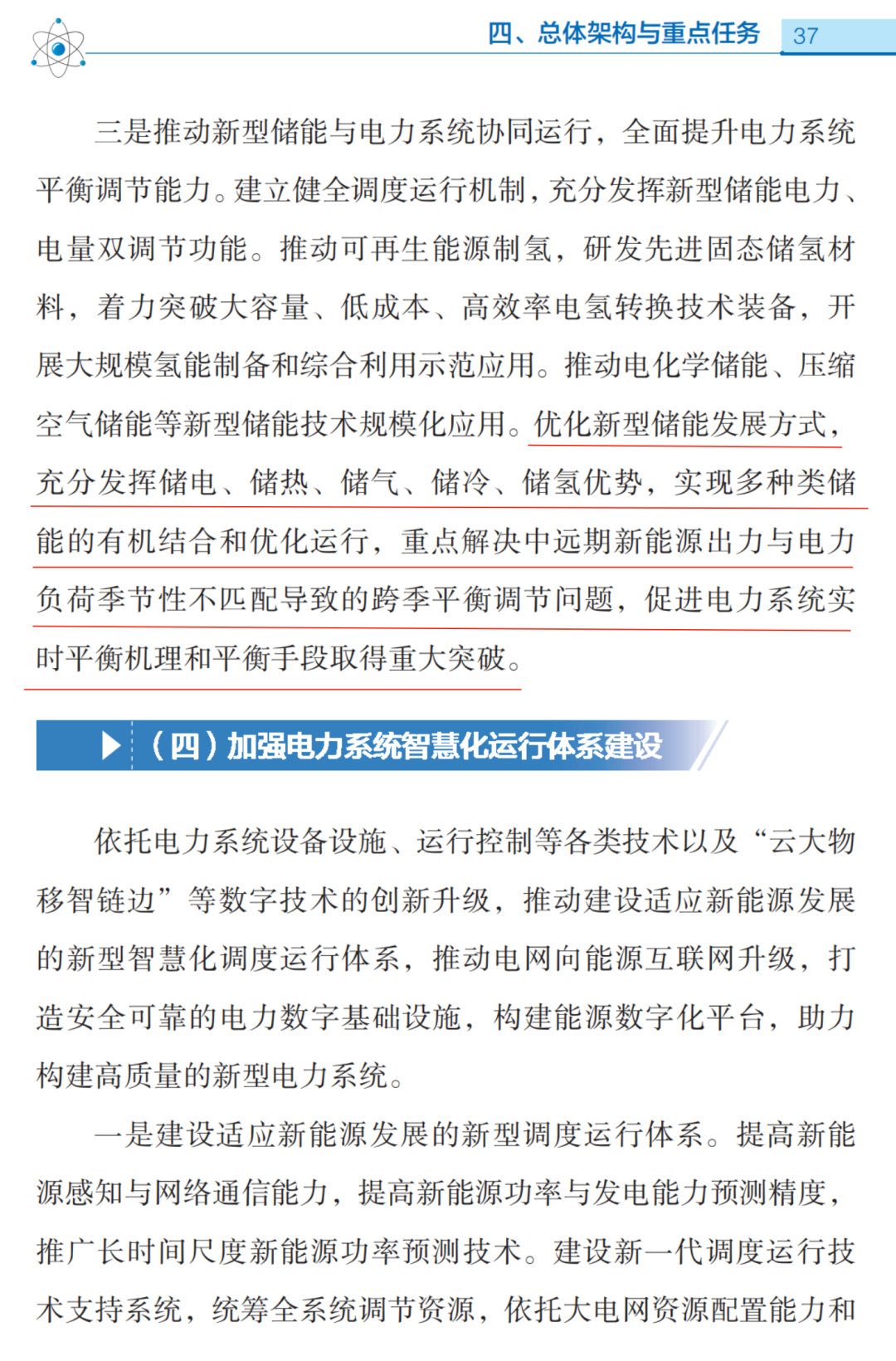 充分發(fā)揮儲(chǔ)電、儲(chǔ)熱、儲(chǔ)氣、儲(chǔ)冷、儲(chǔ)氫優(yōu)勢(shì),實(shí)現(xiàn)多種類儲(chǔ)能的有機(jī)結(jié)合和優(yōu)化運(yùn)行,重點(diǎn)解決中遠(yuǎn)期新能源出力與電力負(fù)荷季節(jié)性不匹配導(dǎo)致的跨季平衡調(diào)節(jié)問題,促進(jìn)電力系統(tǒng)實(shí)時(shí)平衡機(jī)理和平衡手段取得重大突破。