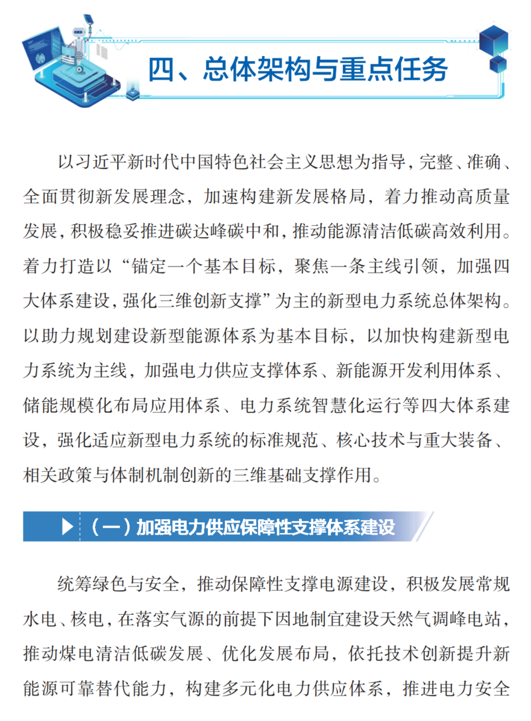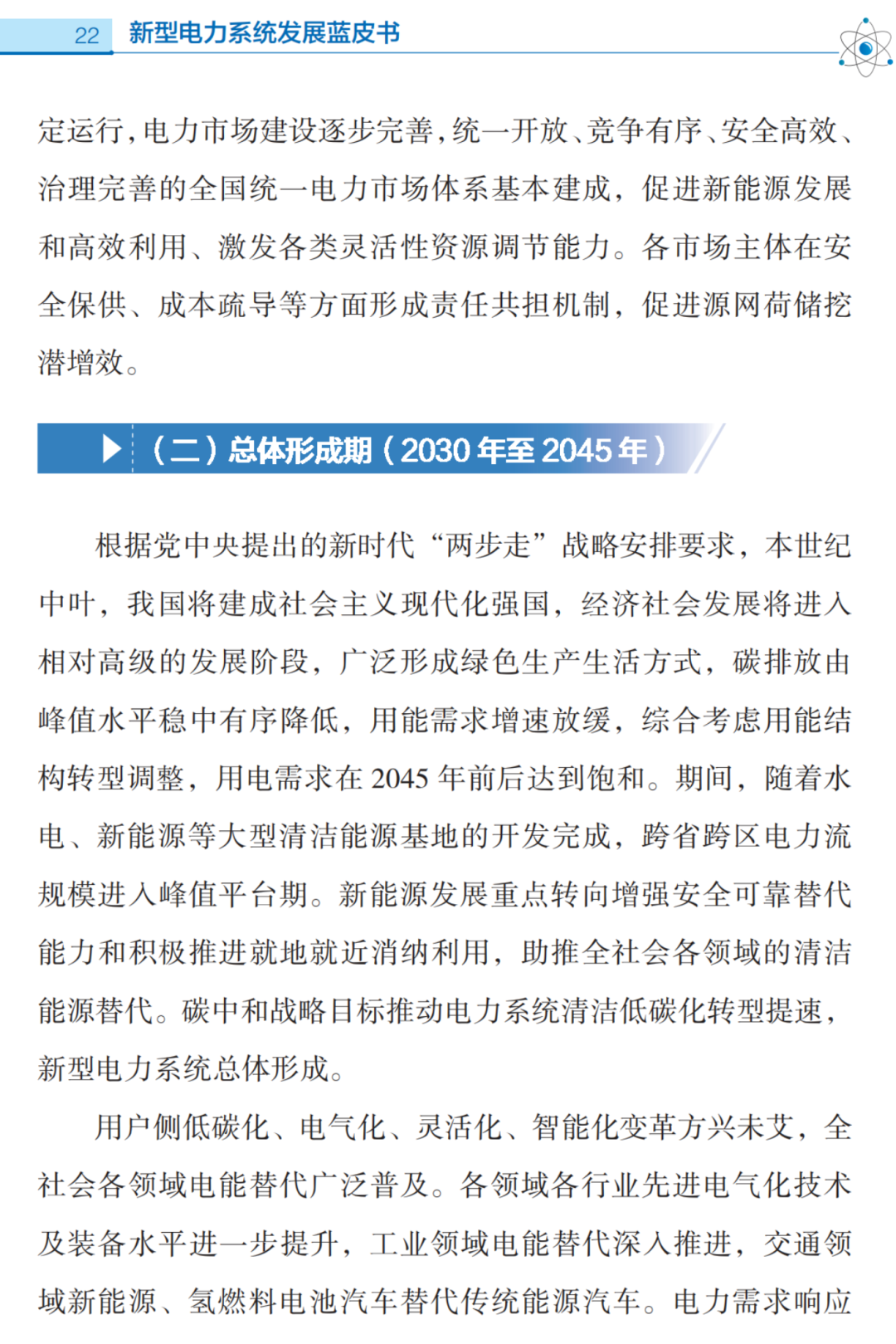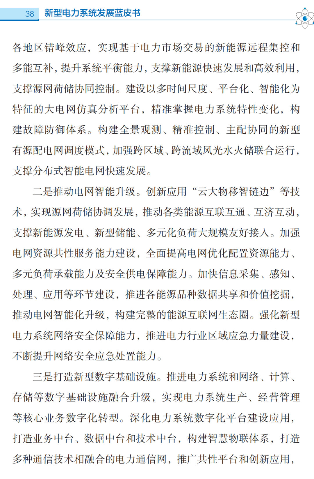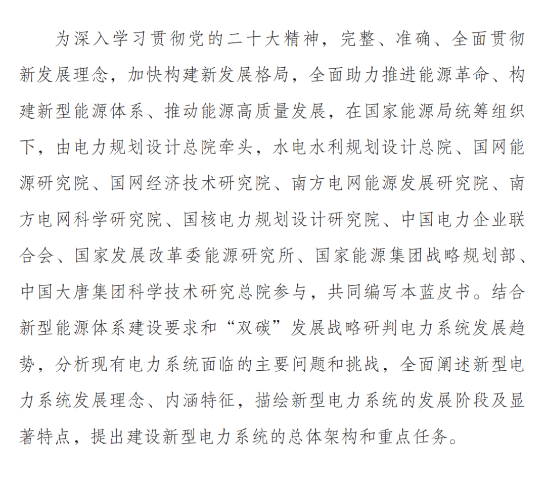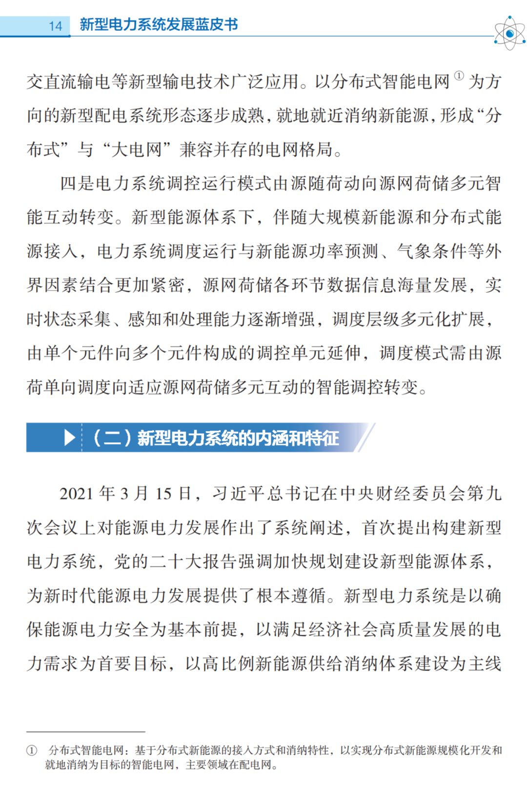 國(guó)家能源局發(fā)布《新型電力系統(tǒng)發(fā)展藍(lán)皮書》。《藍(lán)皮書》結(jié)合新型能源體系建設(shè)要求和“雙碳”發(fā)展戰(zhàn)略研判電力系統(tǒng)發(fā)展趨勢(shì),分析現(xiàn)有電力系統(tǒng)面臨的主要問題和挑戰(zhàn),全面闡述新型電力系統(tǒng)發(fā)展理念、內(nèi)涵特征,描繪新型電力系統(tǒng)的發(fā)展階段及顯著特點(diǎn),提出我國(guó)新型電力系統(tǒng)建設(shè)的總體架構(gòu)和重點(diǎn)任務(wù),為新型電力系統(tǒng)建設(shè)和電力工業(yè)發(fā)展提供了重要指導(dǎo)和參考。