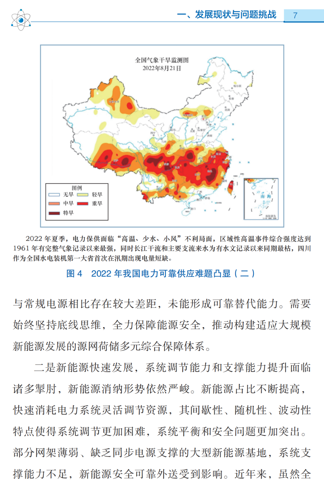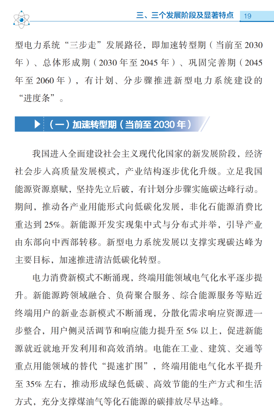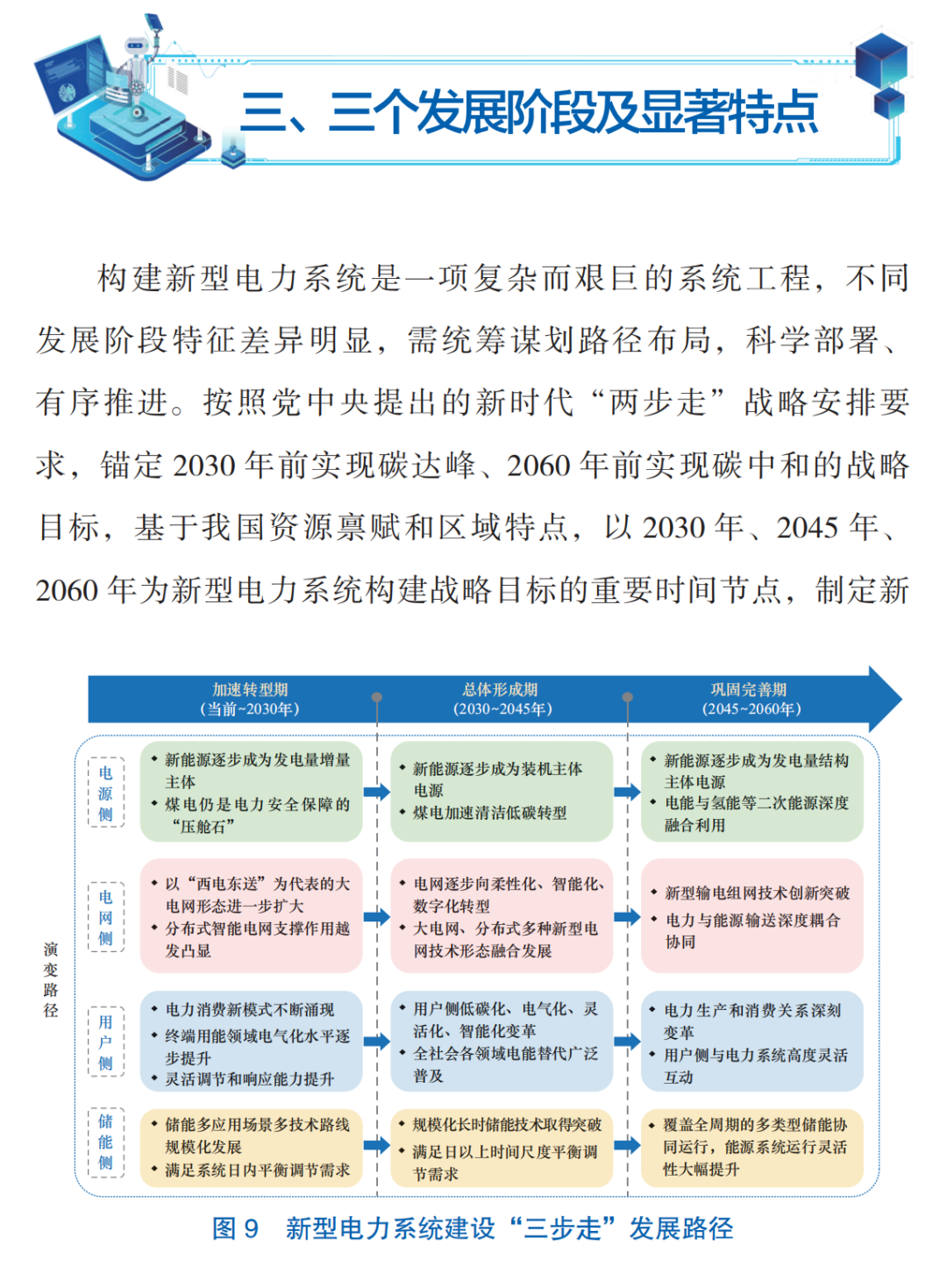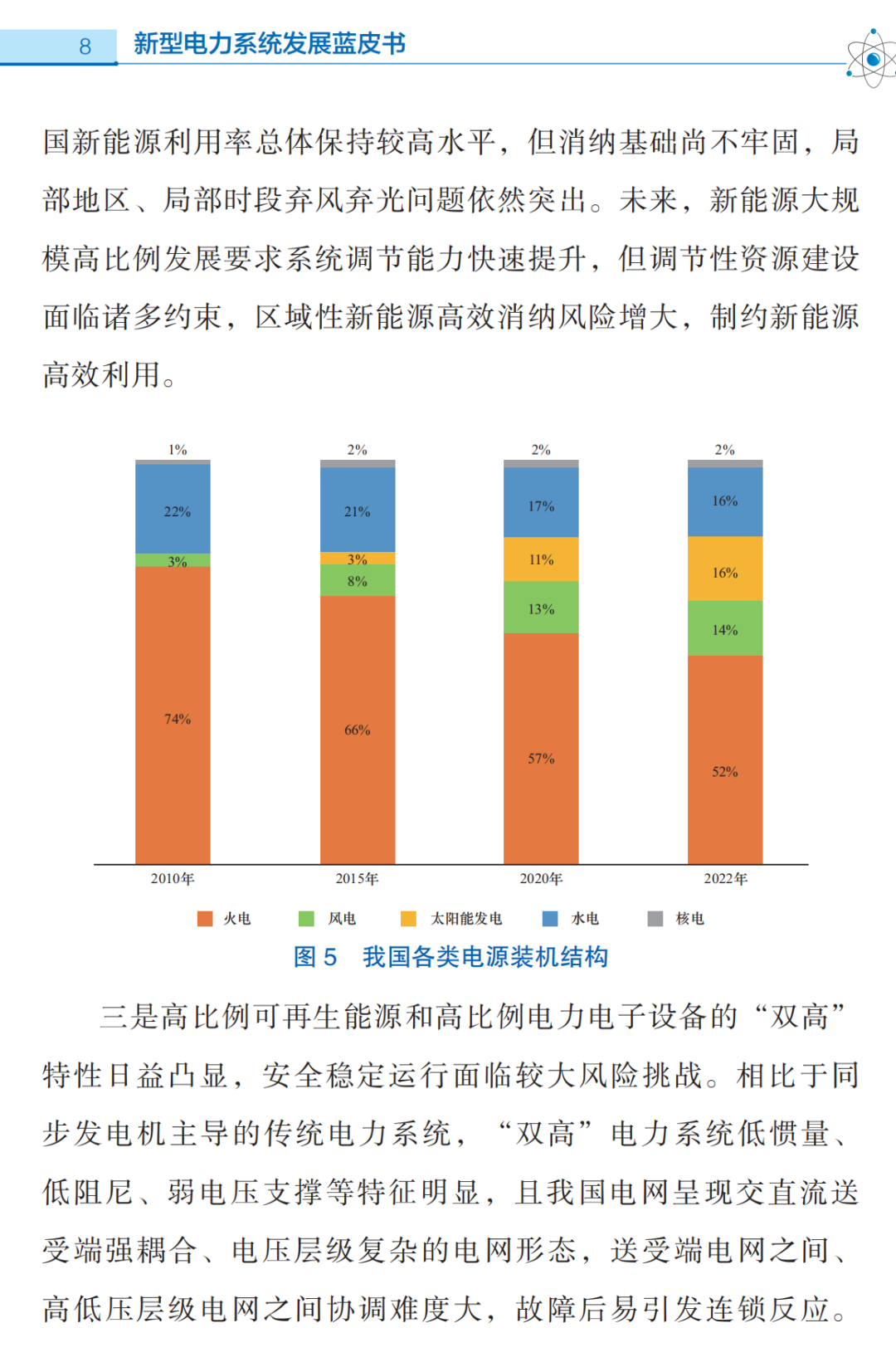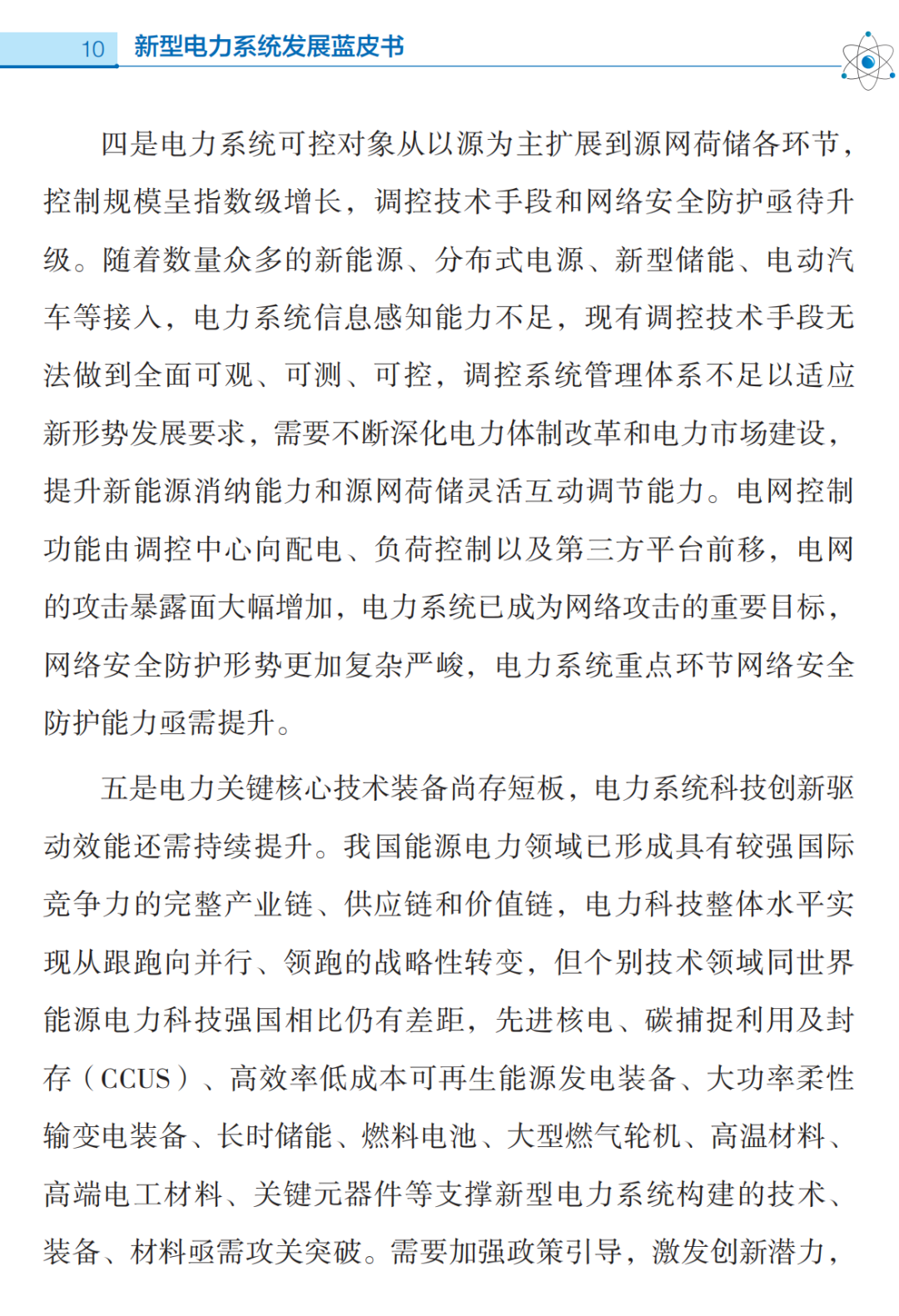 國(guó)家能源局發(fā)布《新型電力系統(tǒng)發(fā)展藍(lán)皮書》。《藍(lán)皮書》結(jié)合新型能源體系建設(shè)要求和“雙碳”發(fā)展戰(zhàn)略研判電力系統(tǒng)發(fā)展趨勢(shì),分析現(xiàn)有電力系統(tǒng)面臨的主要問題和挑戰(zhàn),全面闡述新型電力系統(tǒng)發(fā)展理念、內(nèi)涵特征,描繪新型電力系統(tǒng)的發(fā)展階段及顯著特點(diǎn),提出我國(guó)新型電力系統(tǒng)建設(shè)的總體架構(gòu)和重點(diǎn)任務(wù),為新型電力系統(tǒng)建設(shè)和電力工業(yè)發(fā)展提供了重要指導(dǎo)和參考。