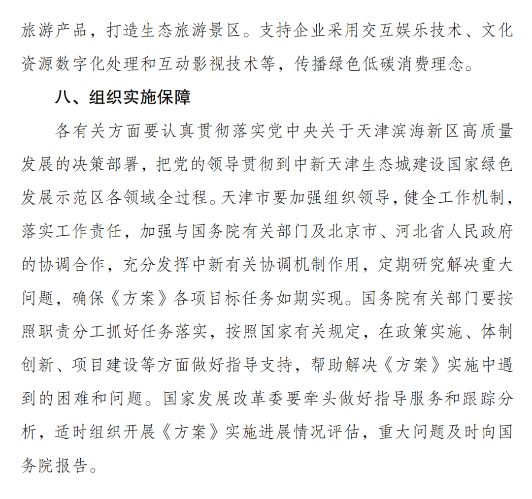 2024年8月28,國家發(fā)展改革委發(fā)布《中新天津生態(tài)城建設(shè)國家綠色發(fā)展示范區(qū)實(shí)施方案(2024—2035年)》。