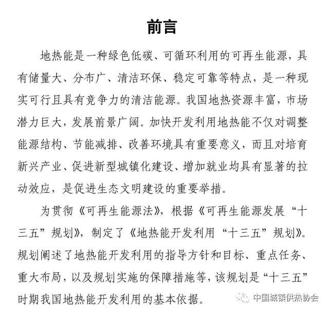 為促進地?zé)崮墚a(chǎn)業(yè)持續(xù)健康發(fā)展,推動建設(shè)清潔、低碳、安全、高效的現(xiàn)代能源體系,按照《可再生能源法》要求,根據(jù)《能源發(fā)展“十三五”規(guī)劃》和《可再生能源發(fā)展“十三五”規(guī)劃》,我們組織編制了《地?zé)崮荛_發(fā)利用“十三五”規(guī)劃》,現(xiàn)印發(fā)你們,請結(jié)合實際貫徹落實。