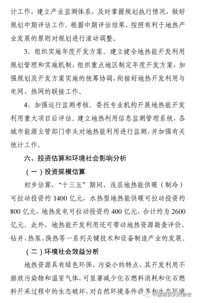 初步估算,“十三五”期間,淺層地?zé)崮芄┡ㄖ评洌┛衫瓌油顿Y約1400億元,水熱型地?zé)崮芄┡衫瓌油顿Y約800億元,地?zé)岚l(fā)電可拉動投資約400億元,合計約為2600億元。