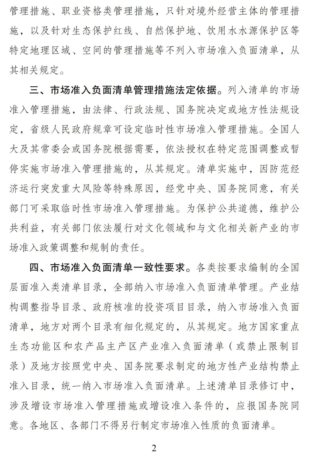 關(guān)于印發(fā)《市場準入負面清單