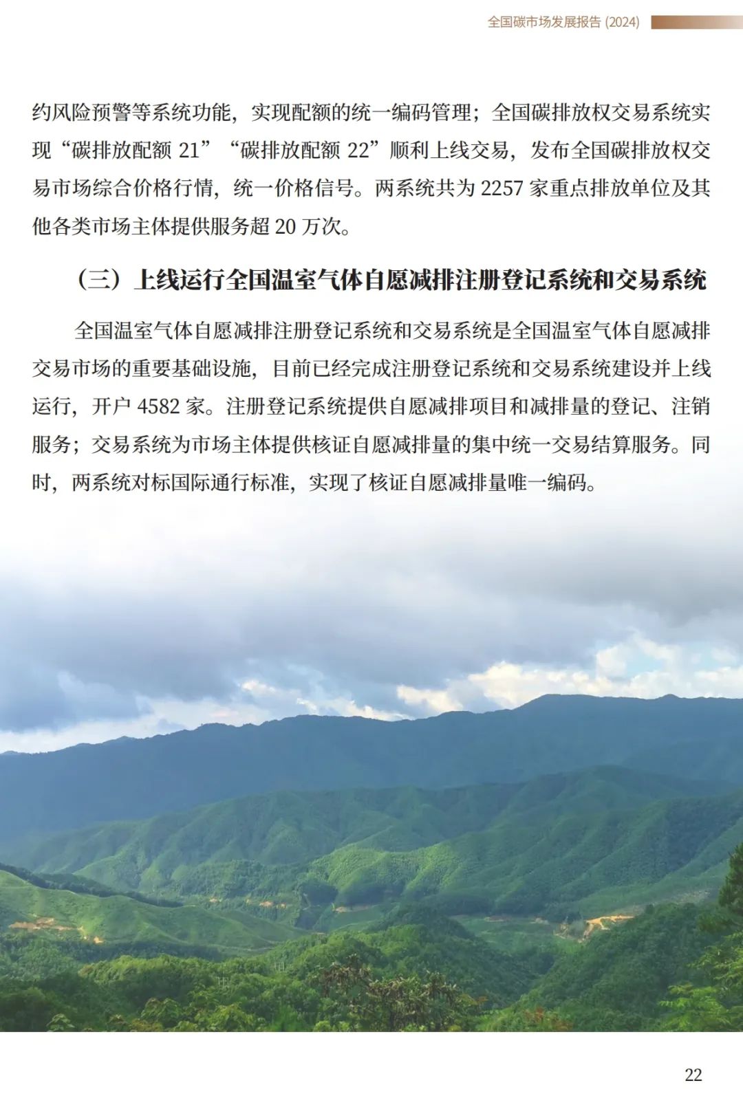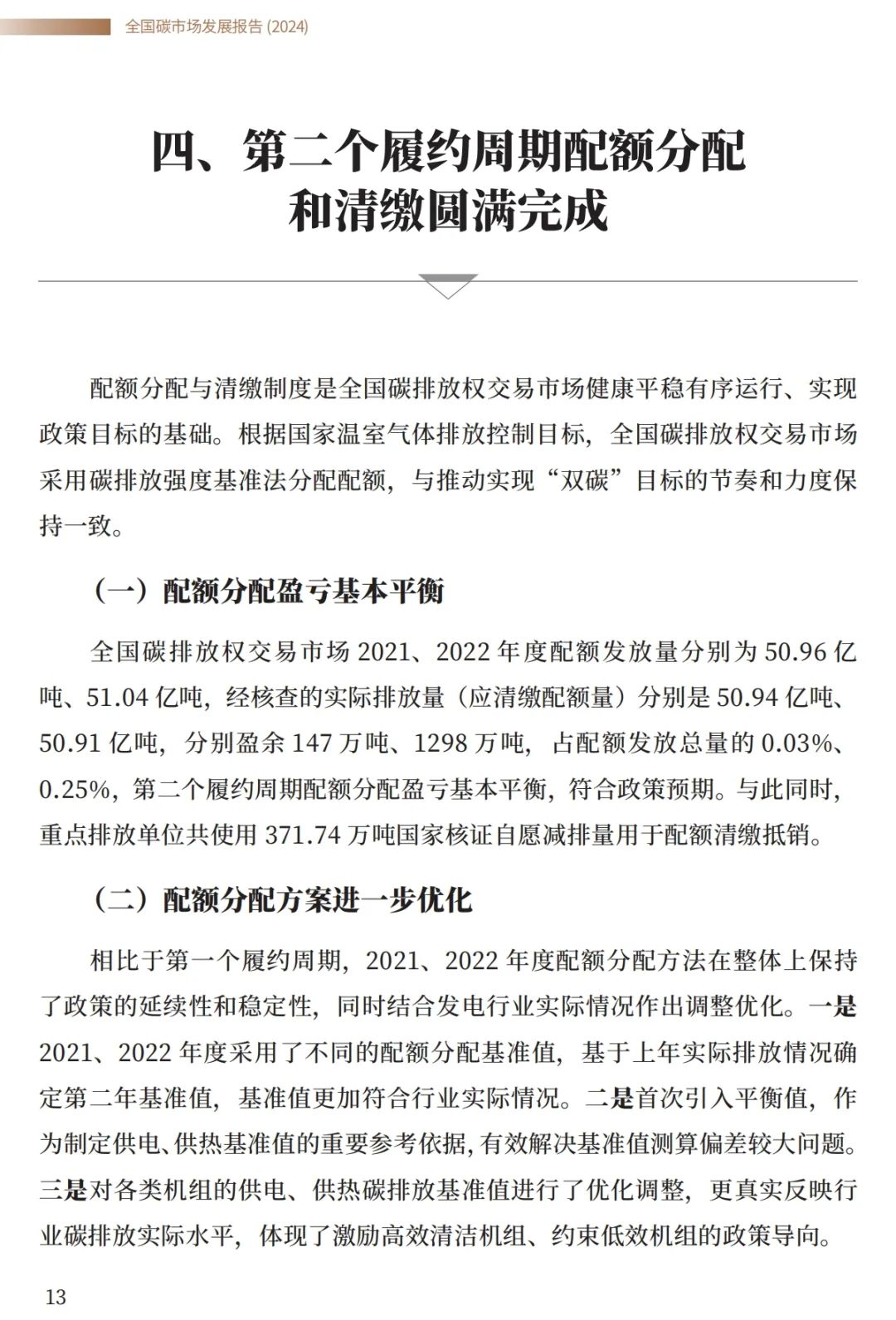 2024年7月22日,生態(tài)環(huán)境部發(fā)布《全國碳市場發(fā)展報(bào)告(2024)》。《報(bào)告》顯示,全國碳排放權(quán)交易市場第二個(gè)履約周期(2021、2022 年度)共納入發(fā)電行業(yè)重點(diǎn)排放單位(含其他行業(yè)自備電廠)2257家,年度覆蓋溫室氣體排放量約51億噸二氧化碳當(dāng)量,是目前全球覆蓋排放量最大的市場。