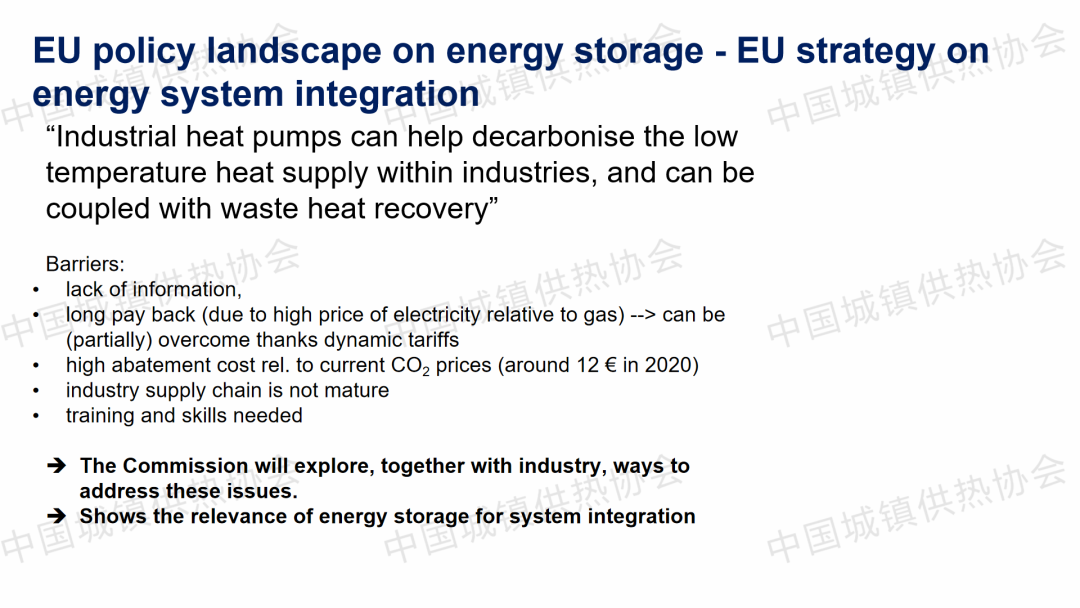 歐洲熱泵協(xié)會(huì)歐盟事務(wù)高級(jí)顧問(wèn)Alessia Del Vasto作了關(guān)于“工業(yè)領(lǐng)域大型熱泵的儲(chǔ)能與脫碳技術(shù)”的主題演講,介紹了工業(yè)熱泵的溫度和容量,歐盟的能源需求,歐洲熱泵和儲(chǔ)能方面的政策、歐盟在能源整合方面的戰(zhàn)略等內(nèi)容。