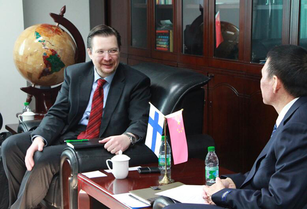 訪(fǎng)談中,商務(wù)參贊Seppo Selkala(鄔尚博)先生首先向協(xié)會(huì)領(lǐng)導(dǎo)們介紹了芬蘭駐華大使館商務(wù)處為改善北京空氣質(zhì)量提出的“美麗北京”項(xiàng)目,以及服務(wù)的其他領(lǐng)域。隨后,鄔先生表達(dá)了與協(xié)會(huì)建立長(zhǎng)期合作關(guān)系的意向,他表示:希望有機(jī)會(huì)與協(xié)會(huì)合作,共同建立一個(gè)改善北京空氣質(zhì)量的合作平臺(tái),通過(guò)技術(shù)與交流,共同改善北京以及中國(guó)其他城市的空氣質(zhì)量。