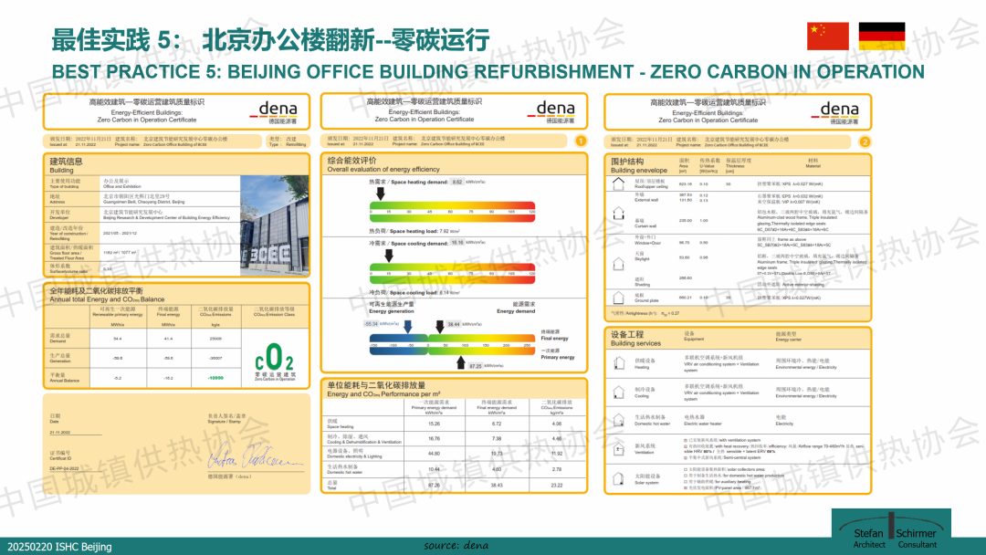 德國能源署前中國高級(jí)專家Stefan Schirmer(石特凡)作了題為“零碳建筑之路——中國的最佳實(shí)踐”的演講,介紹了運(yùn)行階段的零碳建筑標(biāo)準(zhǔn)、建筑一體化光伏技術(shù),并分享了我國的實(shí)踐案例。