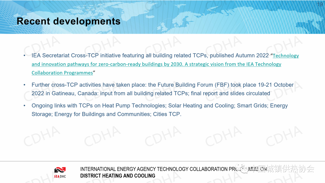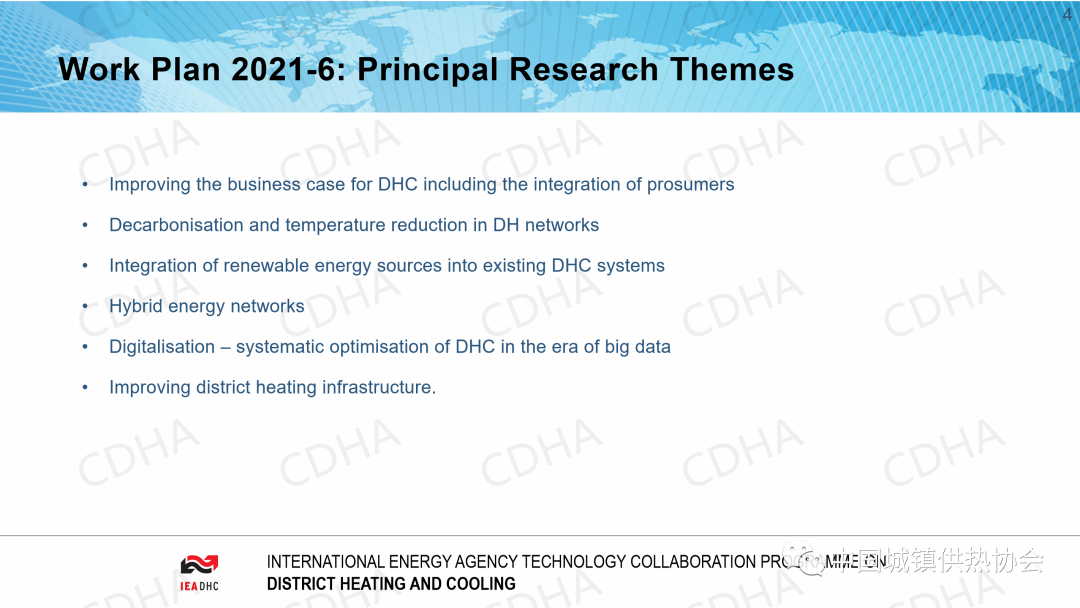 主論壇上,IEA-DHC主席Robin Wiltshire(羅賓·威爾特希爾)作了關(guān)于“IEA區(qū)域供熱及制冷TCP現(xiàn)狀及發(fā)展展望”的主題演講,介紹了IEA DHC TCP(國際能源署區(qū)域供熱供冷與熱電聯(lián)產(chǎn)技術(shù)合作項目)的基本情況、2021-2026年的研究主題以及項目的發(fā)展等內(nèi)容。