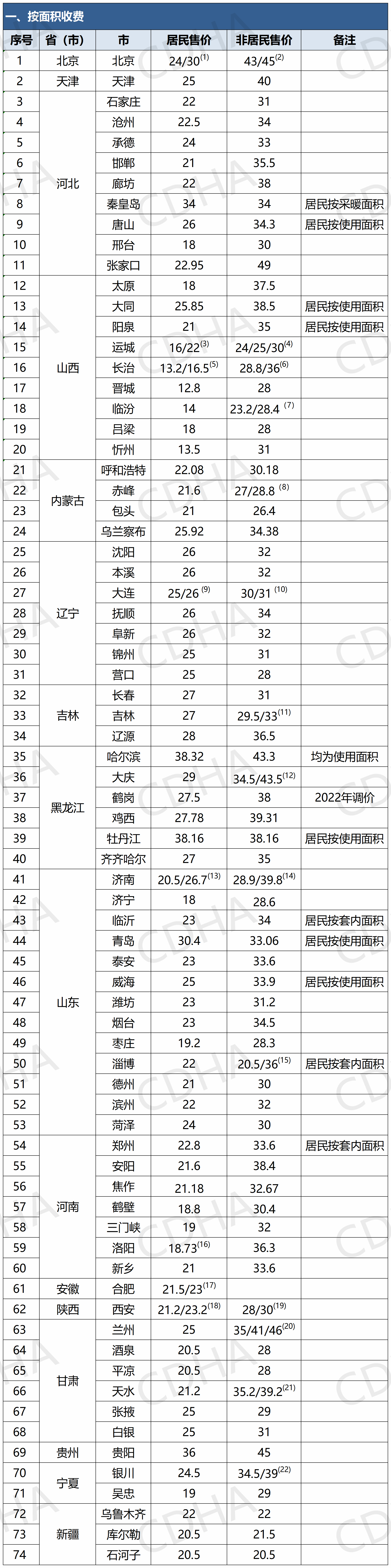 (2)北京市非居民供熱價格:熱電聯(lián)產(chǎn)與燃氣鍋爐城六區(qū)45元/㎡,非城六區(qū)43元/㎡;。