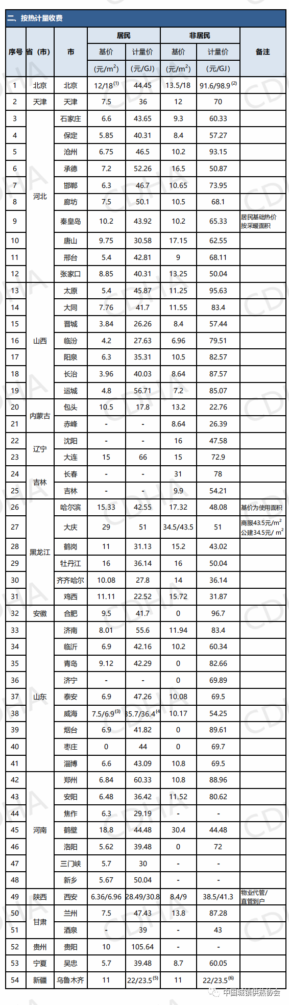 (5)(6)烏魯木齊市居民和非居民計量價:到樓棟22元/GJ,到戶23.5元/GJ。