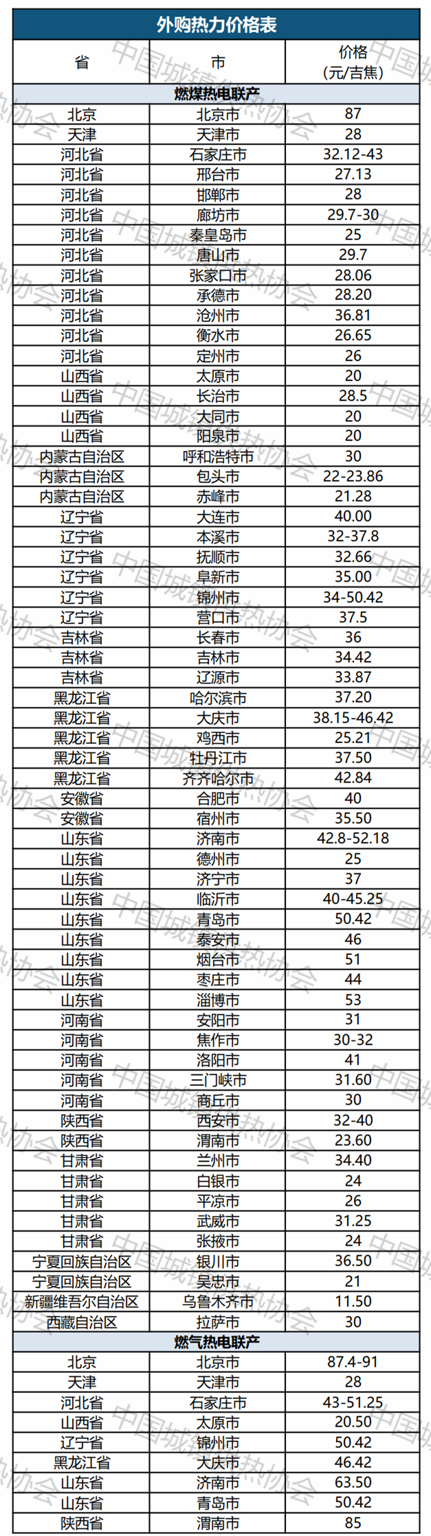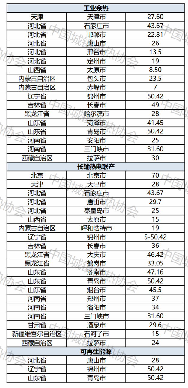 根據(jù)協(xié)會(huì)2021年全國(guó)部分供熱企業(yè)統(tǒng)計(jì)工作結(jié)果,現(xiàn)摘取各地2020-2021供暖期部分地區(qū)外購(gòu)熱力(燃煤、燃?xì)?、長(zhǎng)輸、工業(yè)余熱、可再生能源)價(jià)格,予以公布。