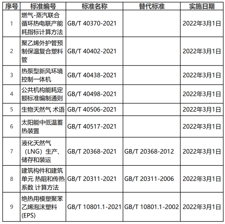 近日,國家市場監(jiān)督管理總局(國家標(biāo)準(zhǔn)化管理委員會(huì))批準(zhǔn)《燃?xì)?蒸汽聯(lián)合循環(huán)熱電聯(lián)產(chǎn)能耗指標(biāo)計(jì)算方法》等450項(xiàng)推薦性國家標(biāo)準(zhǔn)和4項(xiàng)國家標(biāo)準(zhǔn)修改單。與供熱相關(guān)的標(biāo)準(zhǔn)列表如下: