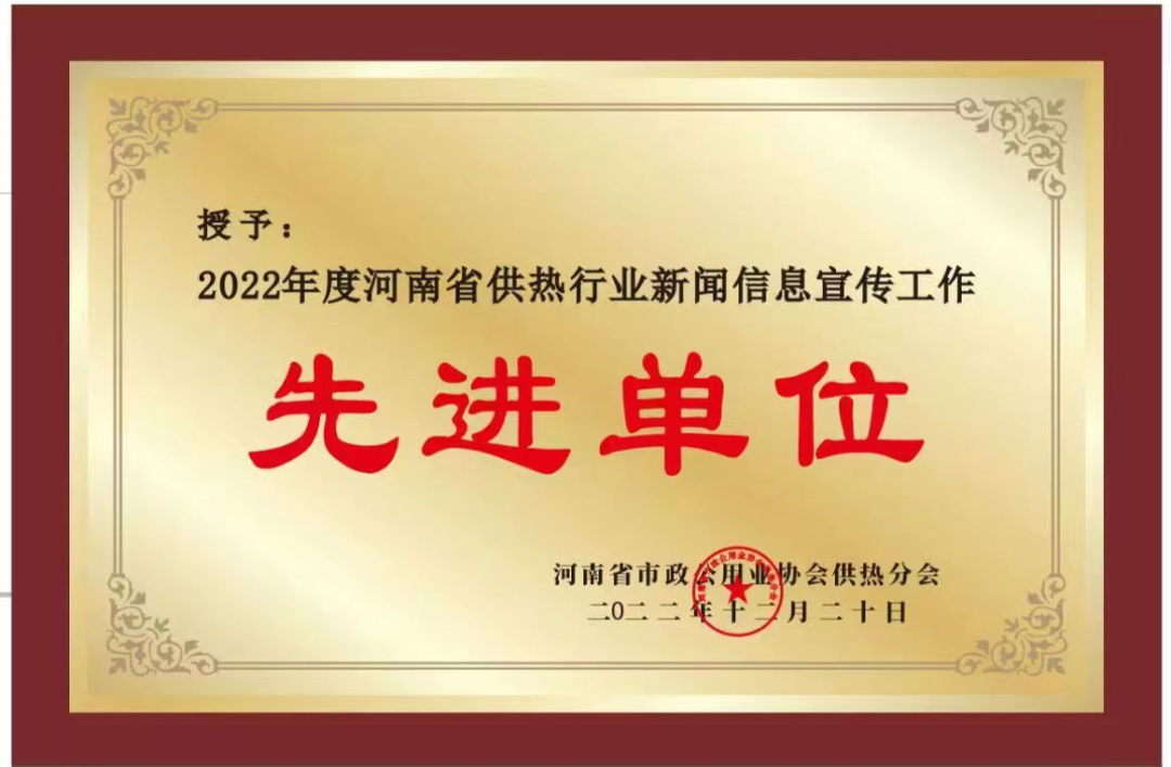 3.安陽益和:榮獲“2020-2022年竣工完成供熱重點(diǎn)民生工程突出貢獻(xiàn)”和“省供熱行業(yè)新聞信息宣傳工作先進(jìn)單位”兩大殊榮