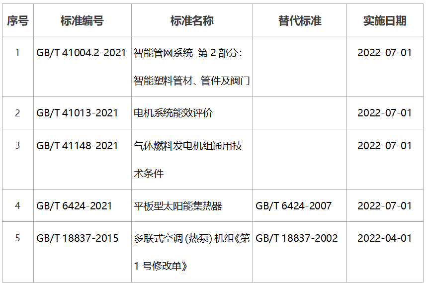 近日,國家市場(chǎng)監(jiān)督管理總局(國家標(biāo)準(zhǔn)化管理委員會(huì))批準(zhǔn)《電機(jī)系統(tǒng)能效評(píng)價(jià)》等503項(xiàng)推薦性國家標(biāo)準(zhǔn)和2項(xiàng)國家標(biāo)準(zhǔn)修改單。與供熱相關(guān)的標(biāo)準(zhǔn)列表如下: