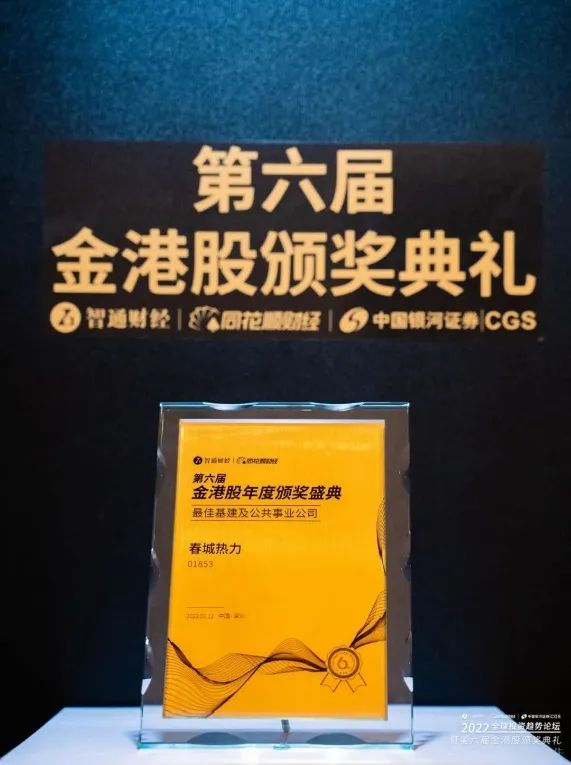 2.春城熱力:榮獲金港股“最佳基建及公共事業(yè)公司”大獎(jiǎng)