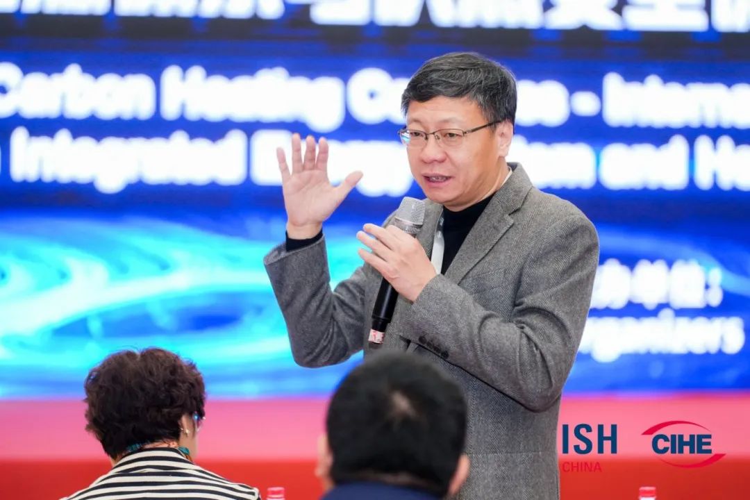 圖:中國(guó)工程院院士、中國(guó)城鎮(zhèn)供熱協(xié)會(huì)副理事長(zhǎng)、供熱技術(shù)專(zhuān)委會(huì)主任江億作了題為“工業(yè)生產(chǎn)用熱的零碳路徑”的演講。