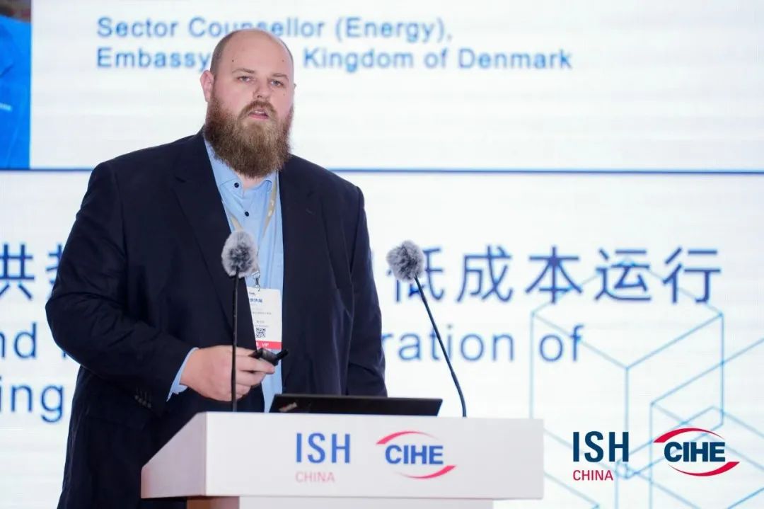 圖:丹麥王國(guó)駐華大使館能源行業(yè)參贊Allan Bertelsen(陳艾倫)作了題為“丹麥區(qū)域供熱的電氣化和低成本運(yùn)行”的演講。