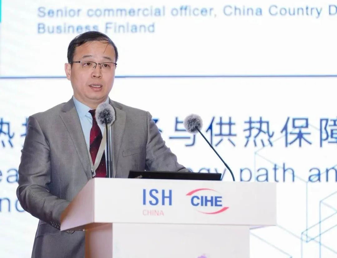圖:芬蘭國(guó)家商務(wù)促進(jìn)局高級(jí)商務(wù)官員劉耀作了題為“芬蘭零碳供熱技術(shù)路徑與供熱保障”的演講。