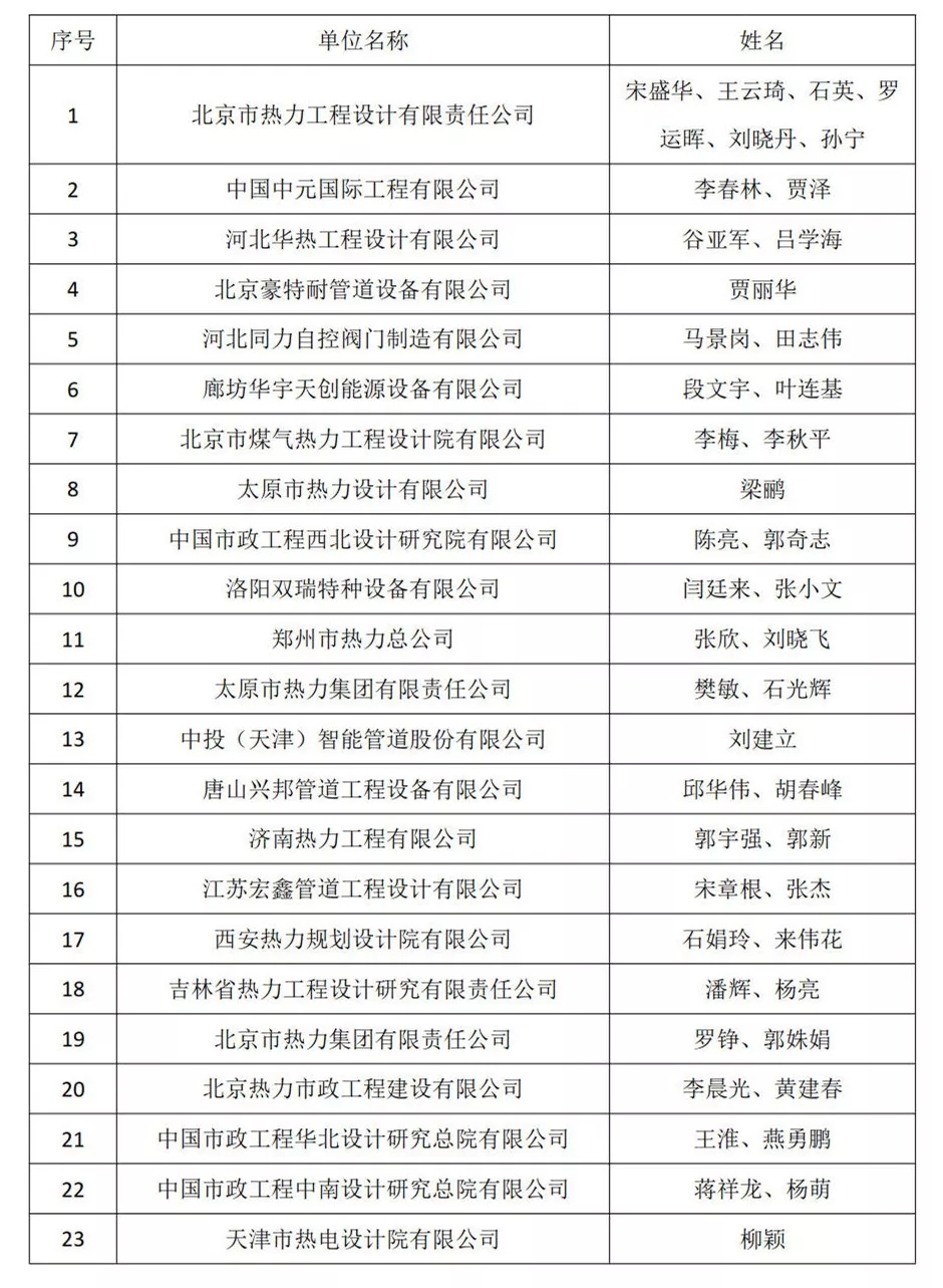 中國城鎮(zhèn)供熱協(xié)會團體標準《綜合管廊熱力管道工程技術標準》編制組成員名單