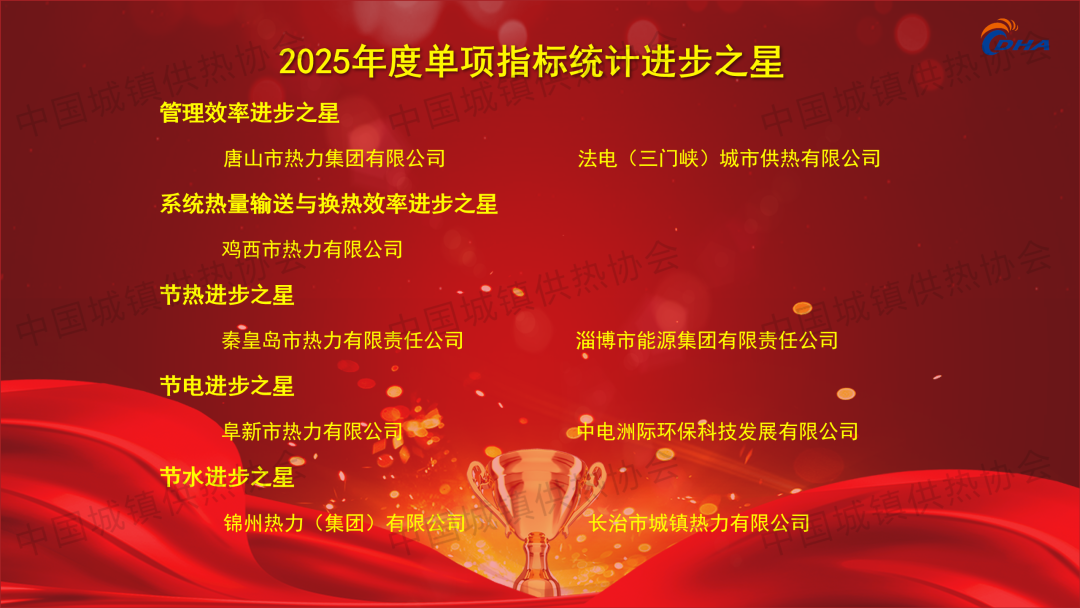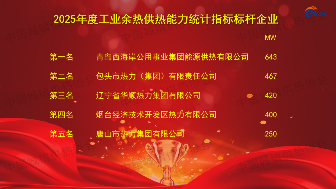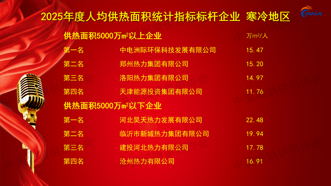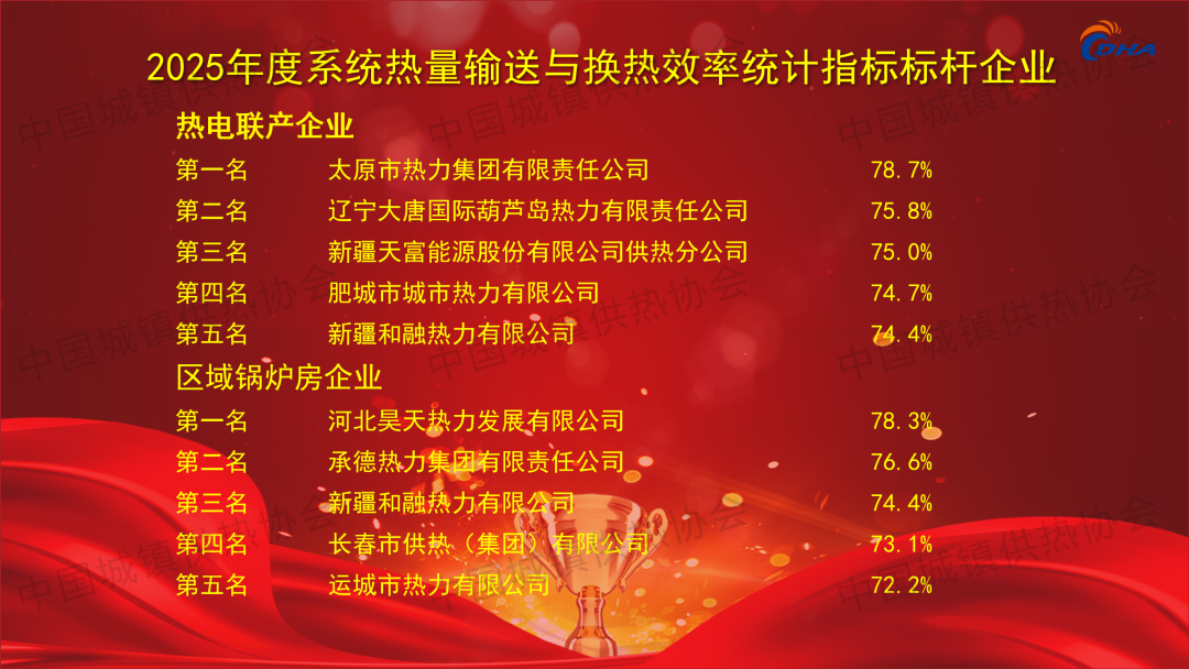 2025年8月23日,第八屆中國供熱學(xué)術(shù)年會主論壇上,根據(jù)中國城鎮(zhèn)供熱協(xié)會2023-2024供暖期統(tǒng)計數(shù)據(jù),協(xié)會發(fā)布了2025年度中國供熱行業(yè)綜合能效統(tǒng)計標(biāo)桿企業(yè)!共有26家供熱企業(yè)入榜!同時公布26個標(biāo)桿示范熱力站、10家能效進步之星以及人均供熱面積、燃煤鍋爐能效、燃?xì)忮仩t能效、工業(yè)余熱供熱能力、系統(tǒng)熱量輸送與換熱效率、熱源單位面積耗熱量、熱力站單位面積耗電量、熱力站單位面積補水量8大指標(biāo)先進企業(yè)名單,并為獲獎單位頒發(fā)證書。(獲獎名單附文后)