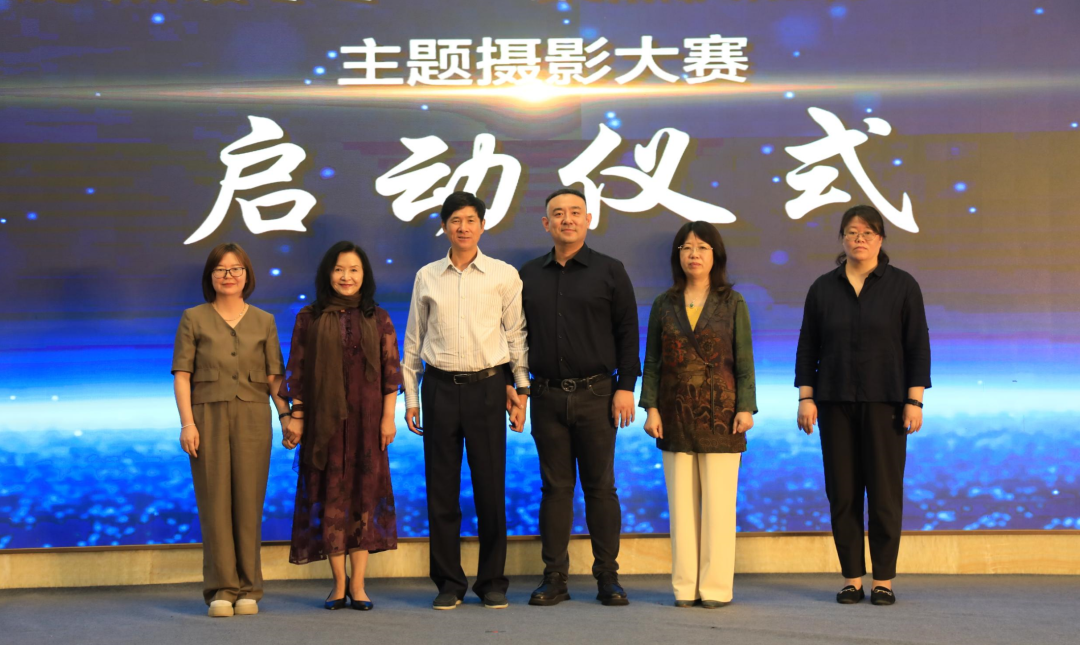 圖:劉水洋、牛小化、綦京峰、叢華成、白淑珍、胡曉紅上臺(tái)共同為第二屆攝影大賽啟幕。
