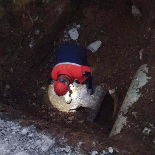 2024年1月20日深夜,某小區(qū)供暖系統(tǒng)突然出現(xiàn)壓力下降的情況。接到緊急通知后,維修班立即出發(fā),對(duì)園區(qū)內(nèi)的供暖管線進(jìn)行全面迅速排查。搜尋后發(fā)現(xiàn)一處地表冒氣,維修隊(duì)伍不顧夜深天寒,迅速下井進(jìn)行進(jìn)一步排查,發(fā)現(xiàn)一處漏點(diǎn)大量跑水。