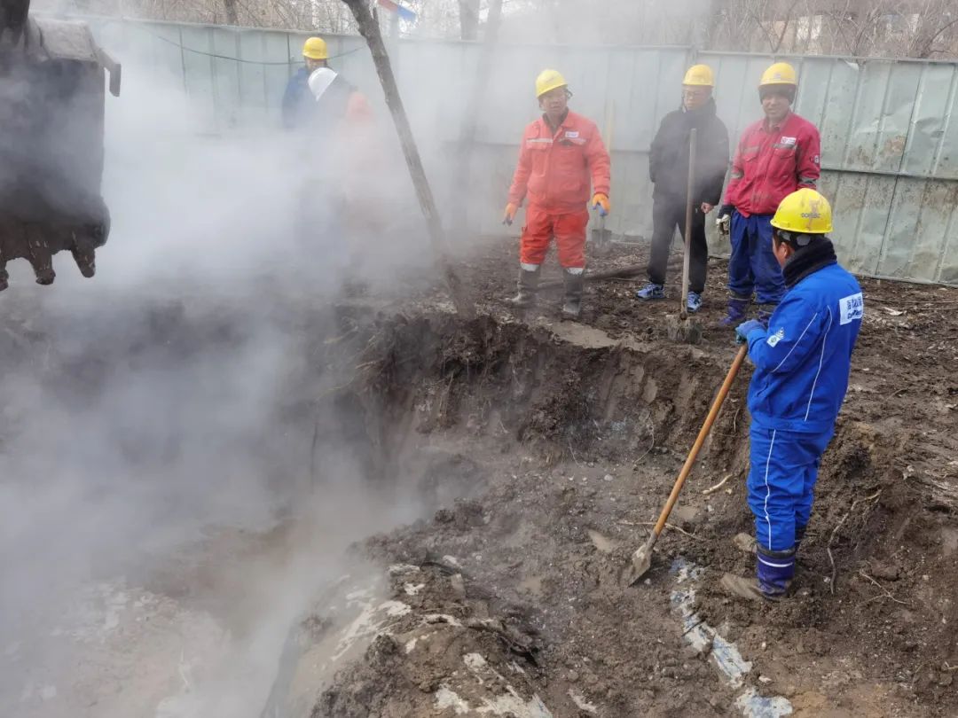 在2024年春節(jié)剛過(guò),主網(wǎng)DN1000一次熱水管網(wǎng)泄漏,該管網(wǎng)為熱源出線(xiàn),供熱區(qū)域較大,如不能及時(shí)解決漏點(diǎn),將造成上萬(wàn)戶(hù)居民供熱停供,因與其他專(zhuān)業(yè)管線(xiàn)交織,開(kāi)挖工作困難,且漏點(diǎn)位置為異形彎頭下側(cè),在不停供的情況下,搶修難度加大,中心迅速組織搶修人員討論制定搶修方案,克服了諸多困難,24小時(shí)之內(nèi)即完成了此次搶修工作,確保了居民供熱未受影響。類(lèi)似這樣的搶修工作,整個(gè)冬運(yùn)是常態(tài),中心職工和搶修作業(yè)人員堅(jiān)守崗位,沒(méi)有怨言,沒(méi)有退縮,沖鋒在前,不斷的挑戰(zhàn)自我的極限,心中銘記供熱工作的使命,為老百姓付出百分百的溫暖。