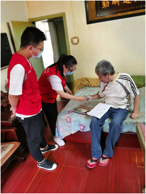 帶領(lǐng)服務(wù)隊(duì)為孤殘老人上門(mén)服務(wù)