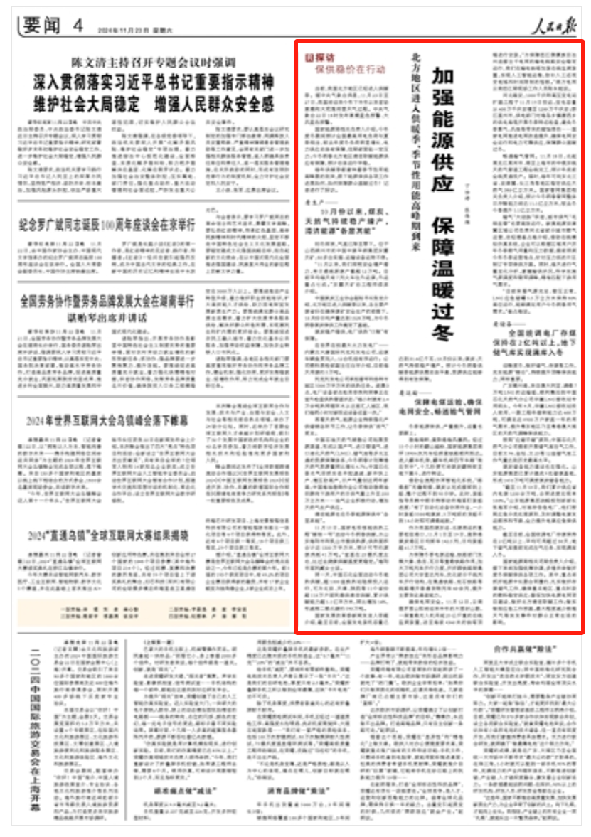 迎峰度冬,做好儲氣、存煤等工作,充實(shí)能源“糧倉”,持續(xù)提升頂峰保供能力,同樣重要。
