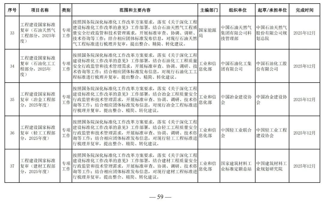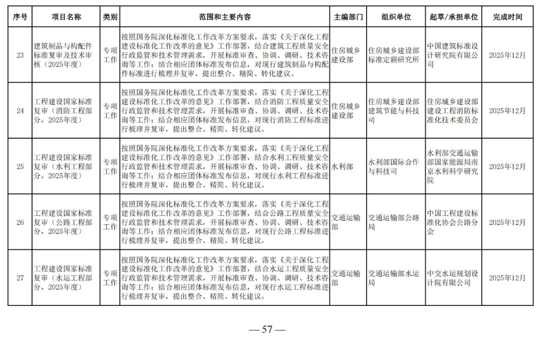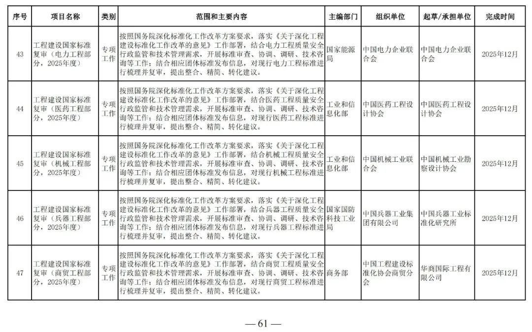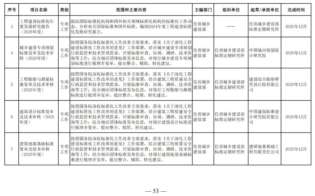 為滿足工程建設(shè)需要,落實工程建設(shè)標準化改革要求,根據(jù)工程建設(shè)規(guī)范體系表,我部組織制定了《2025年工程建設(shè)規(guī)范標準編制及相關(guān)工作計劃》,現(xiàn)印發(fā)給你們,請抓緊安排落實。