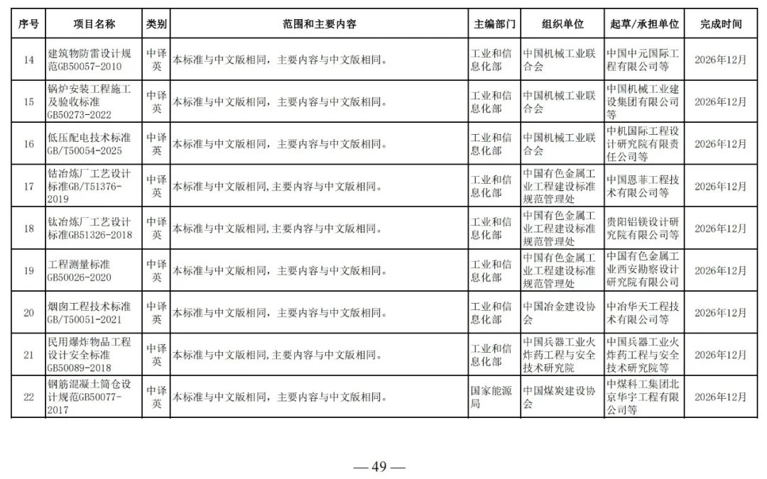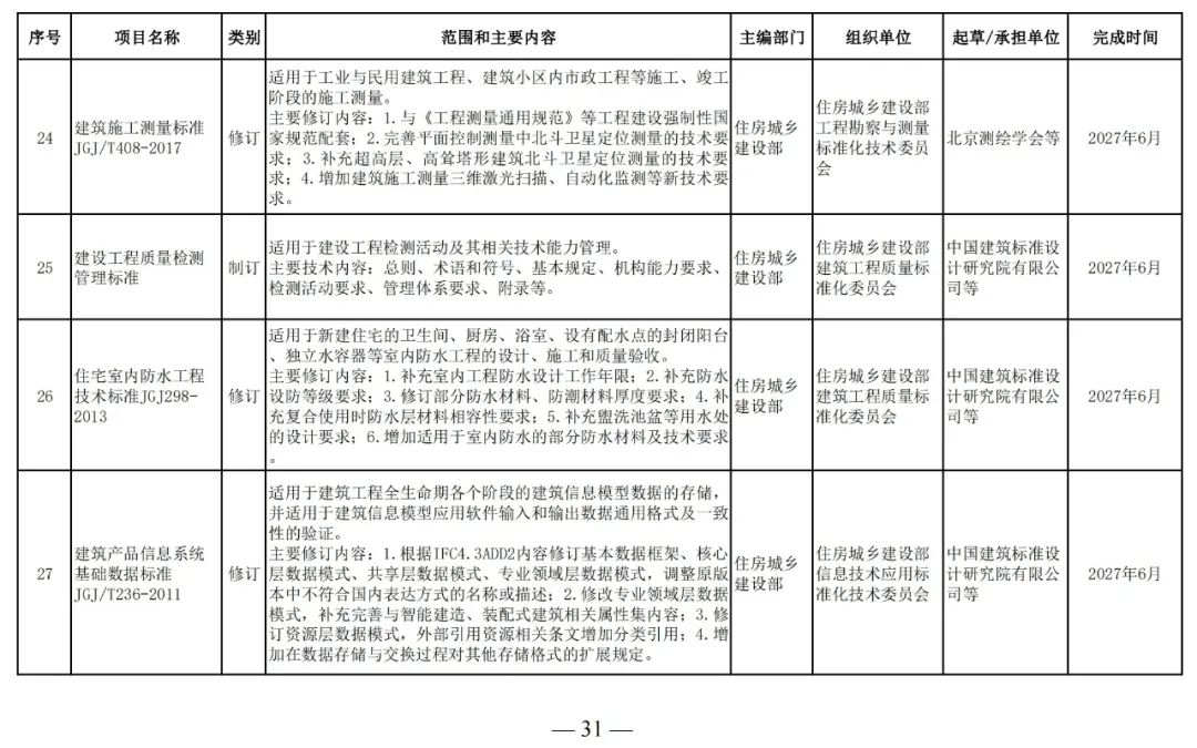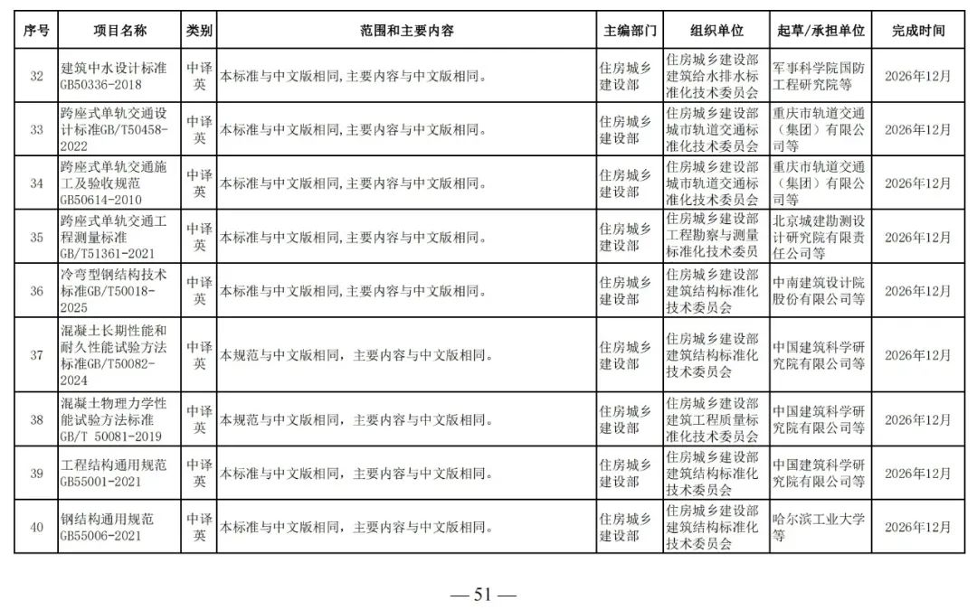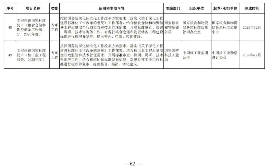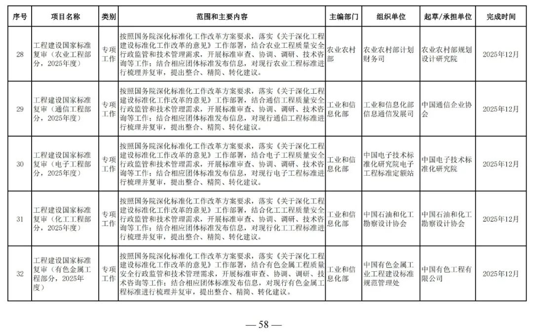 為滿足工程建設(shè)需要,落實工程建設(shè)標準化改革要求,根據(jù)工程建設(shè)規(guī)范體系表,我部組織制定了《2025年工程建設(shè)規(guī)范標準編制及相關(guān)工作計劃》,現(xiàn)印發(fā)給你們,請抓緊安排落實。