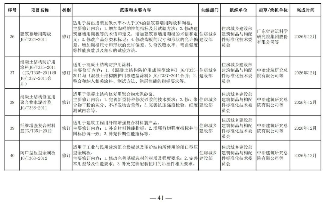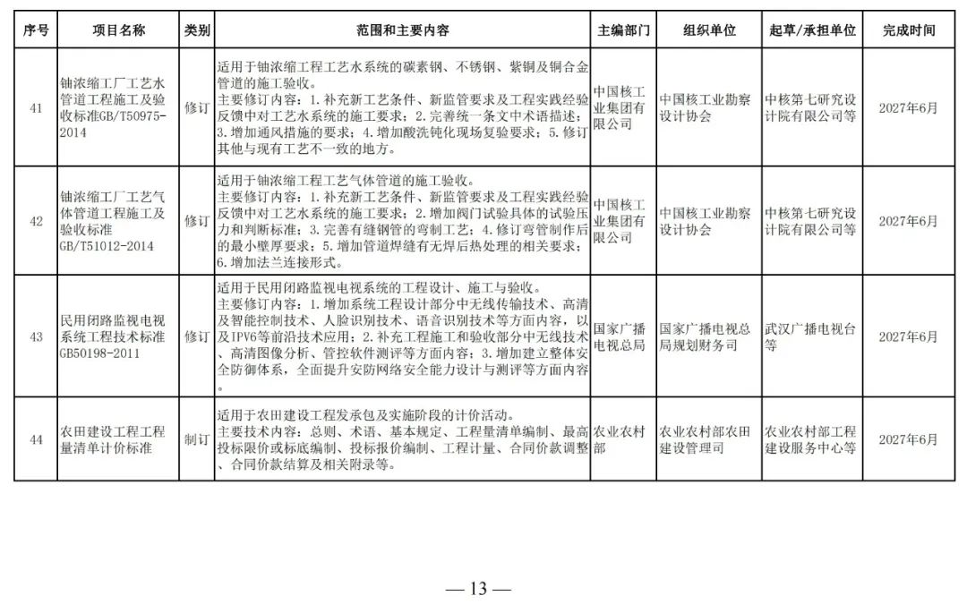 規(guī)范標準編制及相關(guān)工作計劃的通知