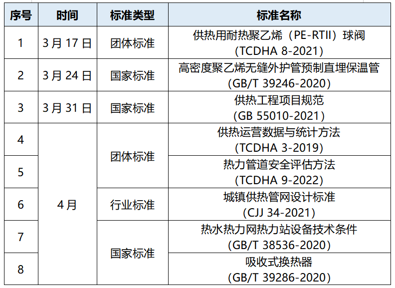 《高密度聚乙烯外護管硬質聚氨酯泡沫塑料預制直埋保溫管及管件》(GB/T29047-2021)于2022年3月1日實施。