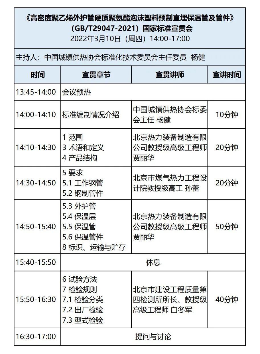 《高密度聚乙烯外護管硬質聚氨酯泡沫塑料預制直埋保溫管及管件》(GB/T29047-2021)國家標準宣貫會