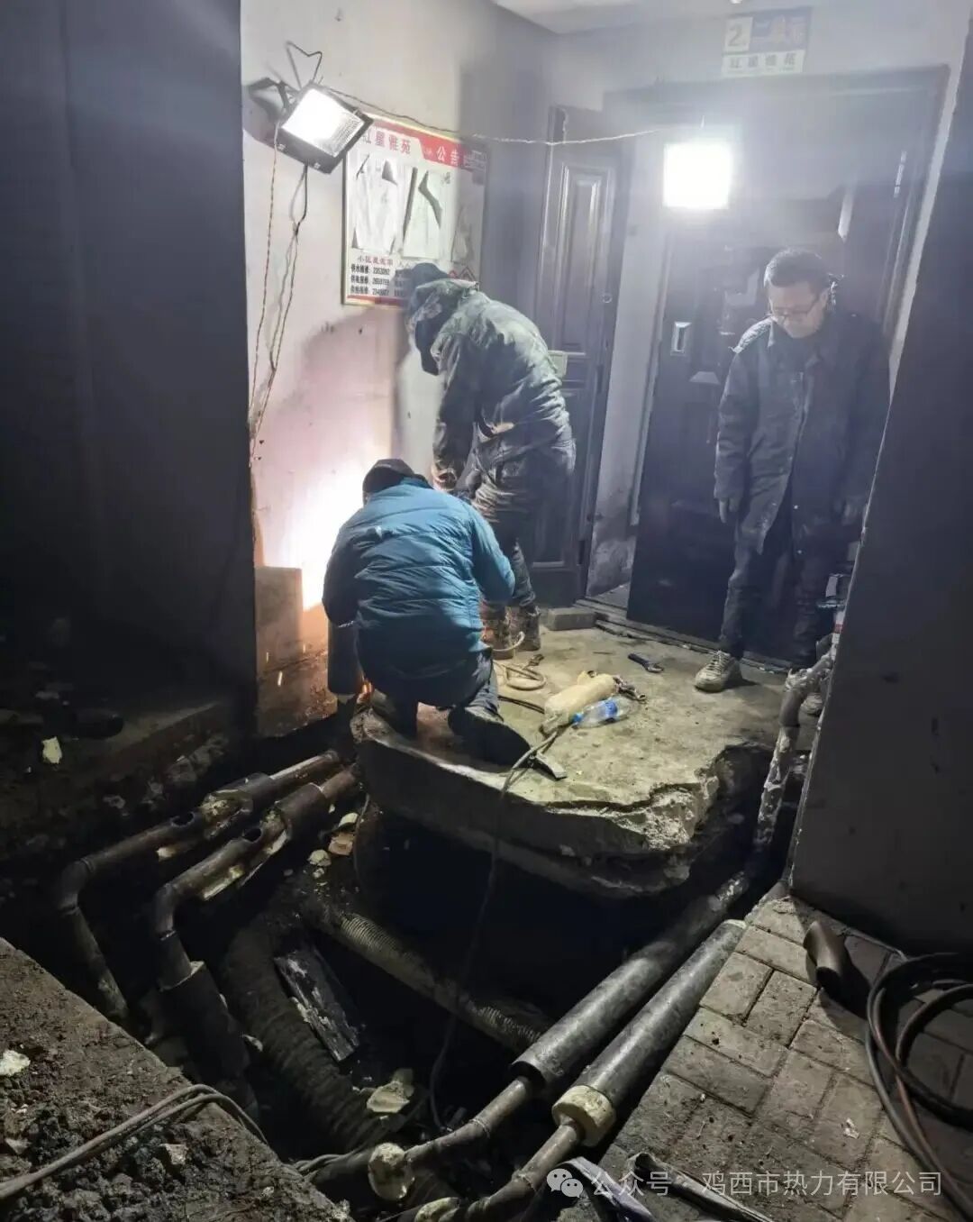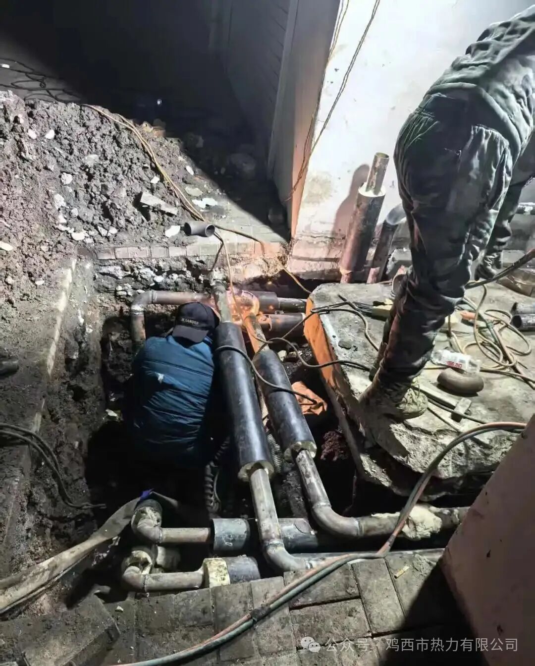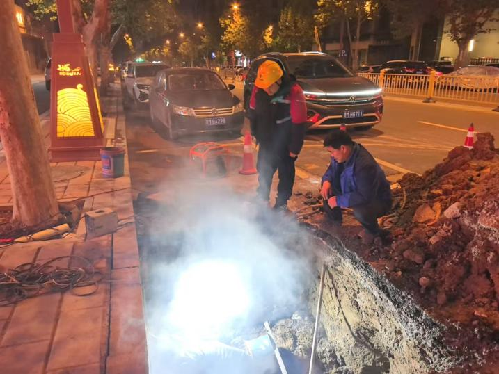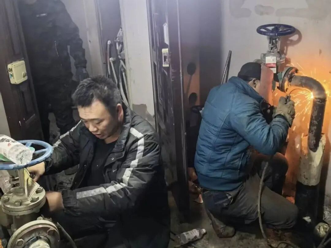 險(xiǎn)情就是命令,責(zé)任重于泰山。紅星分公司生產(chǎn)專員穆廣超第一時(shí)間趕赴現(xiàn)場(chǎng),迅速研判險(xiǎn)情、科學(xué)部署搶修方案。經(jīng)排查發(fā)現(xiàn)漏水點(diǎn)位于地下管網(wǎng)關(guān)鍵節(jié)點(diǎn),老舊管道銹蝕嚴(yán)重,拆除難度極大,且當(dāng)時(shí)氣溫已降至零下十幾攝氏度,寒風(fēng)刺骨、呵氣成霜。紅星所所長(zhǎng)王浩帶領(lǐng)搶修團(tuán)隊(duì)聞令而動(dòng)、火速集結(jié),下午3時(shí)許便攜帶專業(yè)工具直奔現(xiàn)場(chǎng)展開攻堅(jiān)。拆除老化舊管時(shí),隊(duì)員們需彎腰俯身于狹窄作業(yè)坑內(nèi),徒手清理管內(nèi)積水與污垢;鋪設(shè)新管網(wǎng)焊接作業(yè)需精準(zhǔn)把控溫度與角度,稍不留神便可能影響焊接效果。搶修人員頂風(fēng)冒寒、分工協(xié)作,沒有人叫苦叫累,沒有人退縮懈怠,始終堅(jiān)守在搶修一線。從午后暖陽(yáng)到深夜星光,持續(xù)奮戰(zhàn)10余小時(shí),他們以“搶時(shí)間、保供暖”為核心,用凍得通紅的雙手攻克一個(gè)又一個(gè)技術(shù)難點(diǎn),最終在凌晨時(shí)分圓滿完成新管道更換與打壓測(cè)試,及時(shí)恢復(fù)穩(wěn)定供熱。用堅(jiān)守詮釋了“供暖無(wú)小事,民生大于天”的責(zé)任擔(dān)當(dāng)。