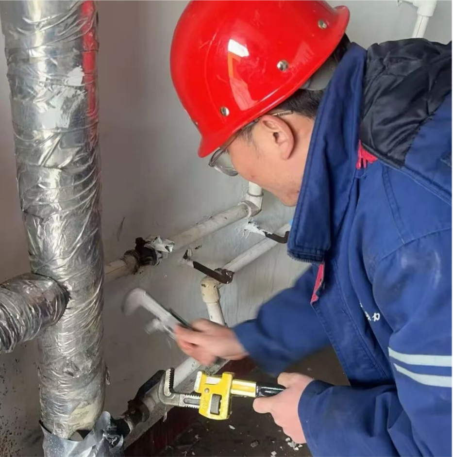 11月15日凌晨?jī)牲c(diǎn),供熱服務(wù)中心的高兵海剛續(xù)完暖壺水,就接到加州小鎮(zhèn)暖氣爆管的求助電話。他立刻攜帶工具包出發(fā),十分鐘抵達(dá)用戶家,此時(shí)積水已沒過腳踝。高師傅踩進(jìn)冷水?dāng)Q銹死的閥門無(wú)果,便沖進(jìn)室外管道井。井內(nèi)昏暗寒冷,冰水浸透衣服,他借手機(jī)微光清理、切割管道。半小時(shí)后成功封堵漏水,用戶再三感謝,他只說(shuō)“這是我們中環(huán)寰慧暖管家應(yīng)該做的”,便裹著濕衣返回崗位,身影如寒夜暖光。