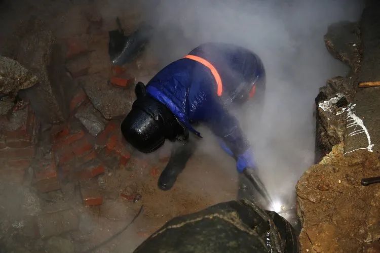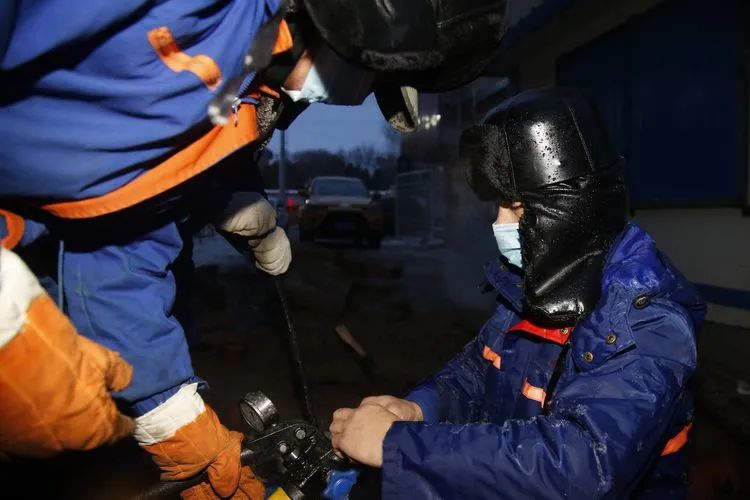 在搶修過程中,維修管理站全體人員克服零下17攝氏度寒冷天氣,連續(xù)工作9個小時,蹲在管道間人工挖掘作業(yè)。焊工師傅趴在地上進行焊接,特別是親自操作帶壓堵漏注膠工作的維修管理站站長佟繼華,技術高超、動作嫻熟,對各種突發(fā)狀況應對得當。熱水澆到身上,由于天氣寒冷馬上結(jié)冰,像穿了一層盔甲一樣,他毫無怨言,一直堅持到漏點處理完畢,又馬上操作挖掘機進行回填作業(yè),充分體現(xiàn)了陽光人的敬業(yè)奉獻精神。