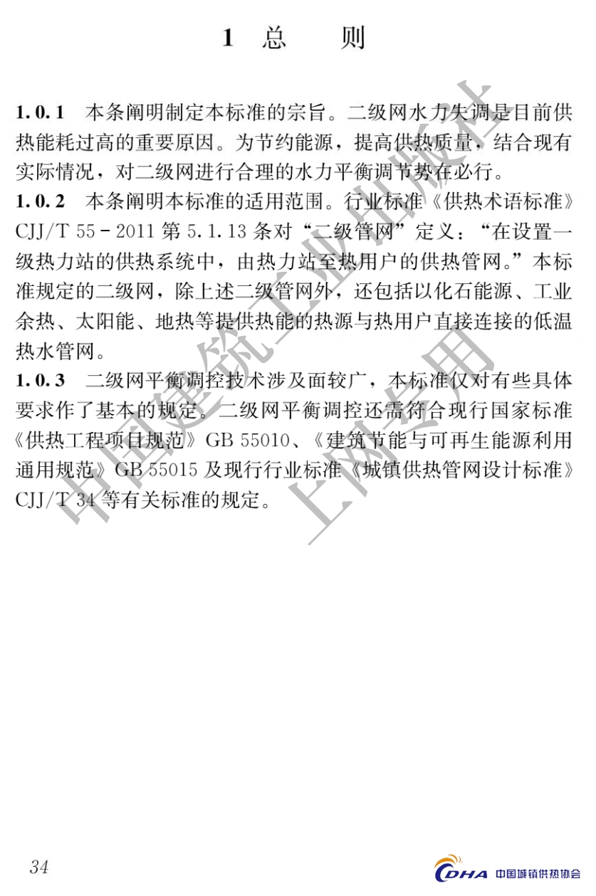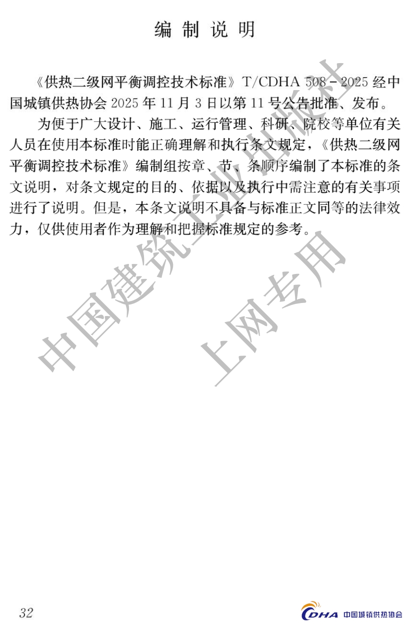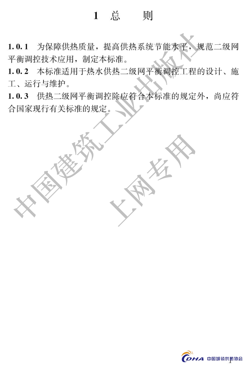 該標準適用于熱水供熱二級網平衡調控工程的設計、施工、運行與維護。供熱二級網平衡調控除應符合本標準的規(guī)定外,尚應符合國家現行有關標準的規(guī)定。