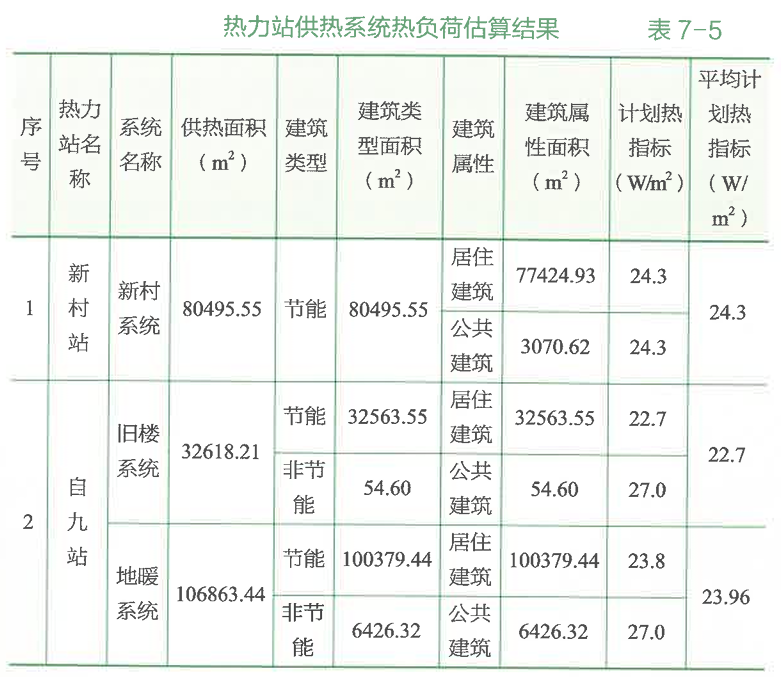 表7-5為部分熱力站供熱系統(tǒng)熱負荷估算結(jié)果。